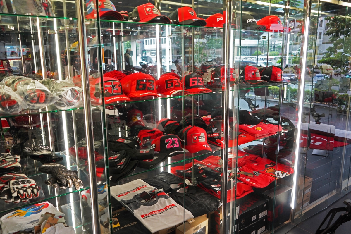 信田さん:「ショップの名の通りアパレルやグッズ販売に特化したドゥカティのブランディングを担うストアです。ドゥカティのアパレルは本当に充実しています。バイクウエアはもちろんのこと水着やサンダルなどもあります。そのカタログは全535ページもあります。カタログを見ているとやはりドゥカティに乗っていたら、メーカー純正アパレルで乗るのが一番カッコいいと思います。その一方、あまりの種類の多さに片手間作業で取り組むのは無理だと思います。実際にはその多くの情報をお客様へ伝えきれていません。自社オンラインストアの新製品の登録も追いついていないのが現状です。