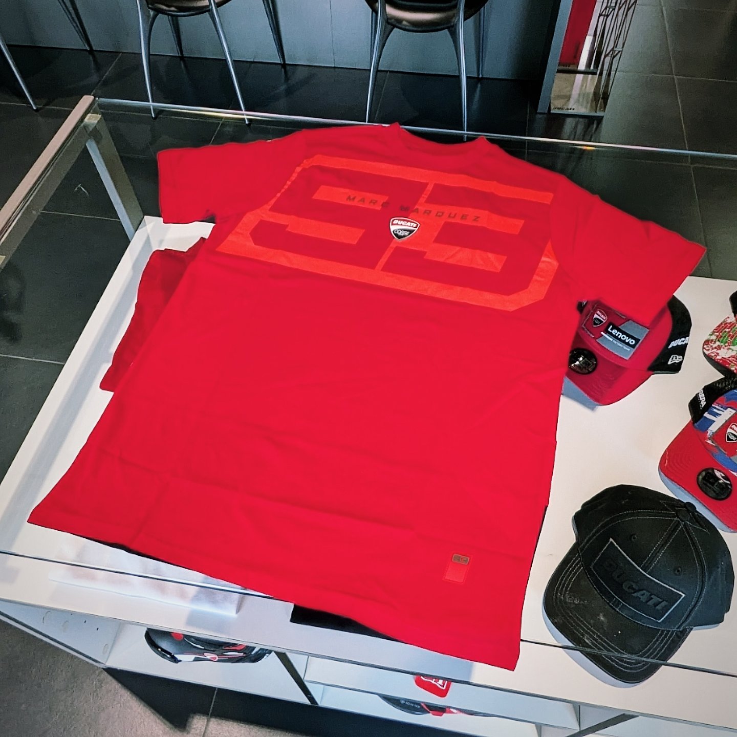 マルク・マルケス選手の名前とDucati Corseのシールドエンブレムがあしらわれており裾にもラバー素材で作られたタグがアクセントに✨️