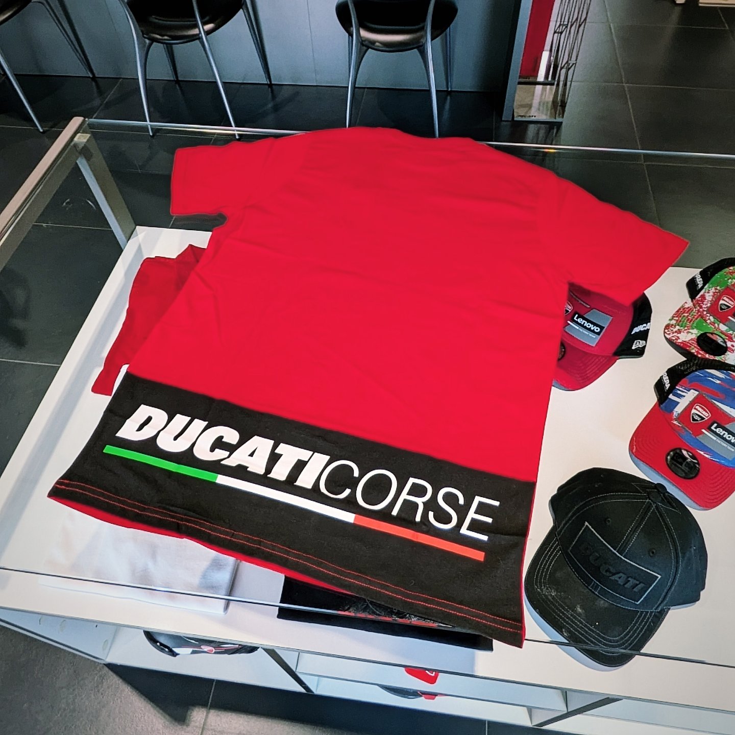 背面には大きくDucati Corseの大型ロゴとイタリアのトリコロールカラーのラインが入ってとってもお洒落!