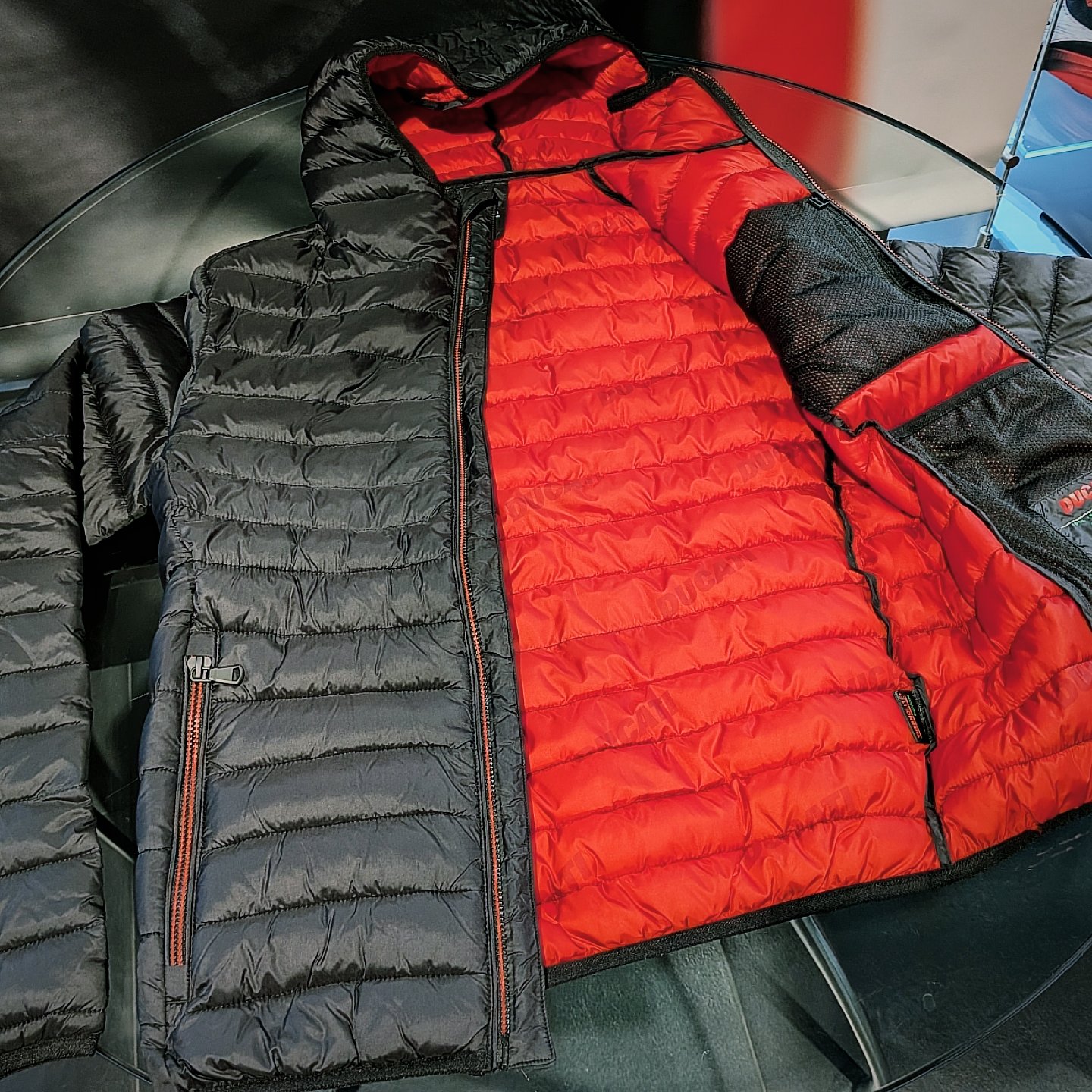 ファスナー、シールドロゴ、カスタム裏地にはドゥカティレッドが取り入れられており、こだわりを感じるデザインとなっております🙌