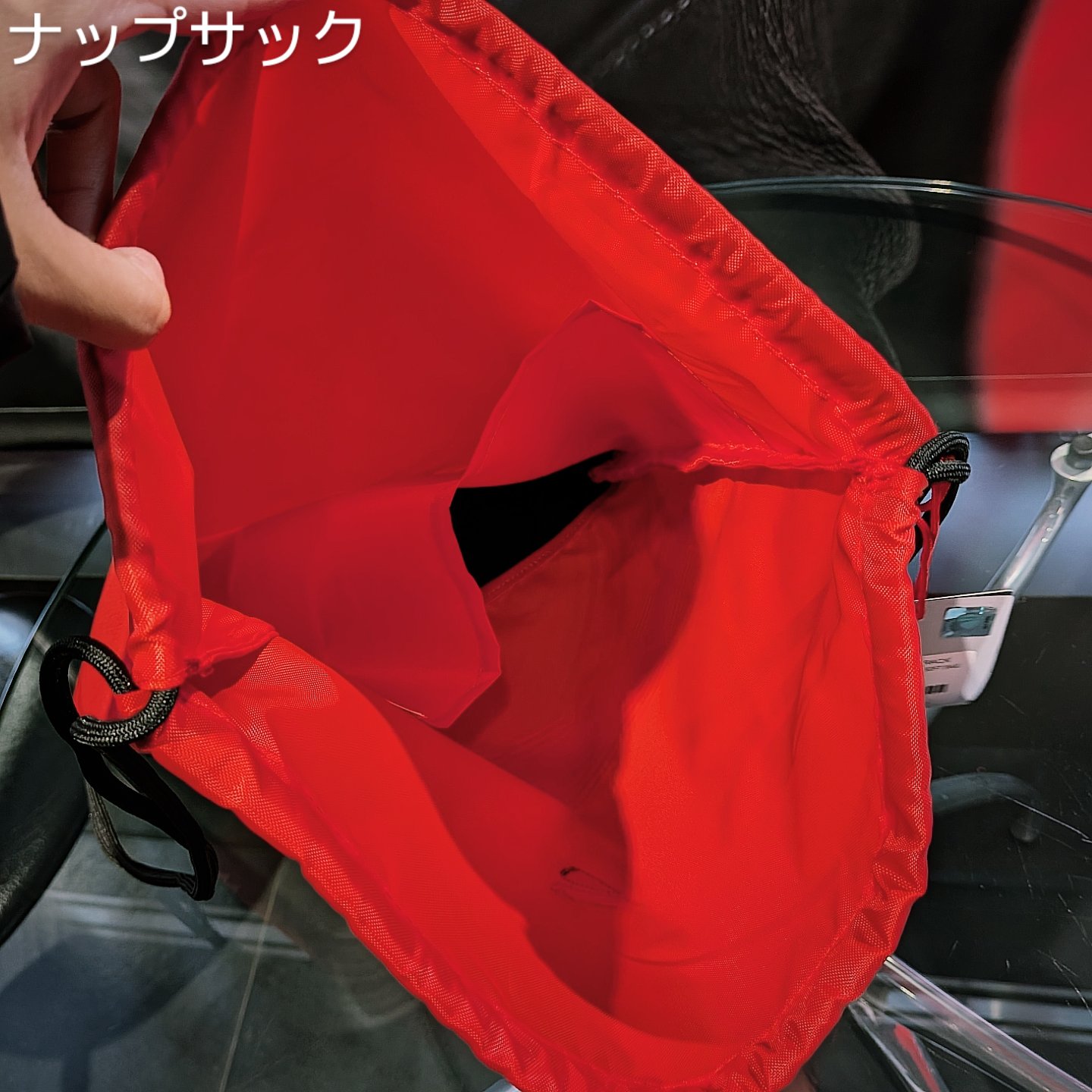 取り出し口が大きいので色々入れられそうなナップサックです!👏