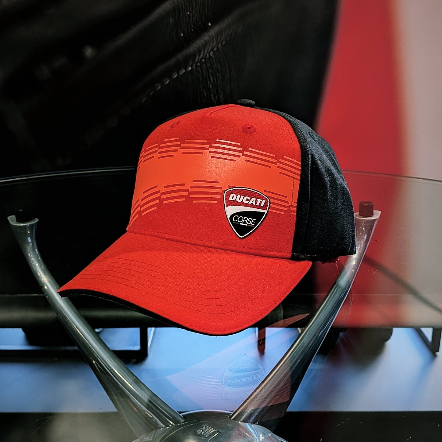 特徴的な模様とDucati Corseのシールドエンブレムがあしらわれており赤×ネオンレッド×黒がスタイリッシュなデザインとなっております。