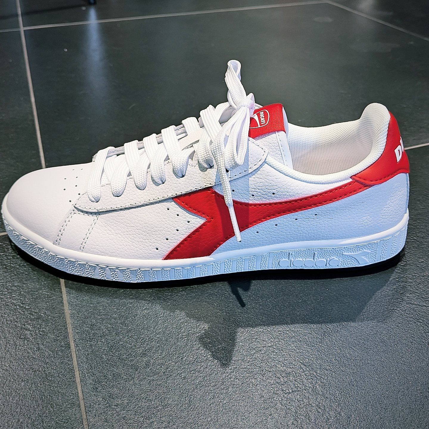 Ducati Anniversario は、プレミアムワックスレザーを使用し、Game L Low Waxed モデルにインスパイアされたエレガントで様々な場面で使用できるユニセックススニーカーです。快適性と耐久性にレトロな雰囲気を兼ね備え、1970年代のテニスシューズのスタイルを思い起こさせます。 ソール: ゴム アッパー: 革製 ライナー: ハニカム仕上げポリエステル 100% 閉じ方: くつ紐