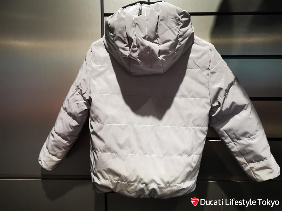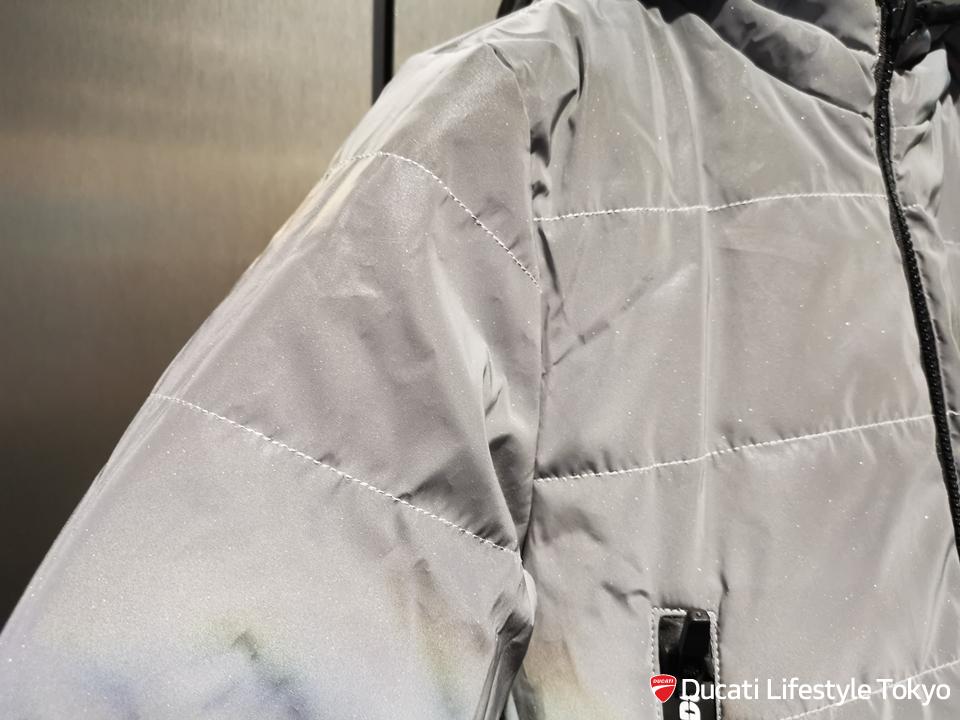 ブラックは無地、こちらは全体にリフレクターの素材を使用しております!